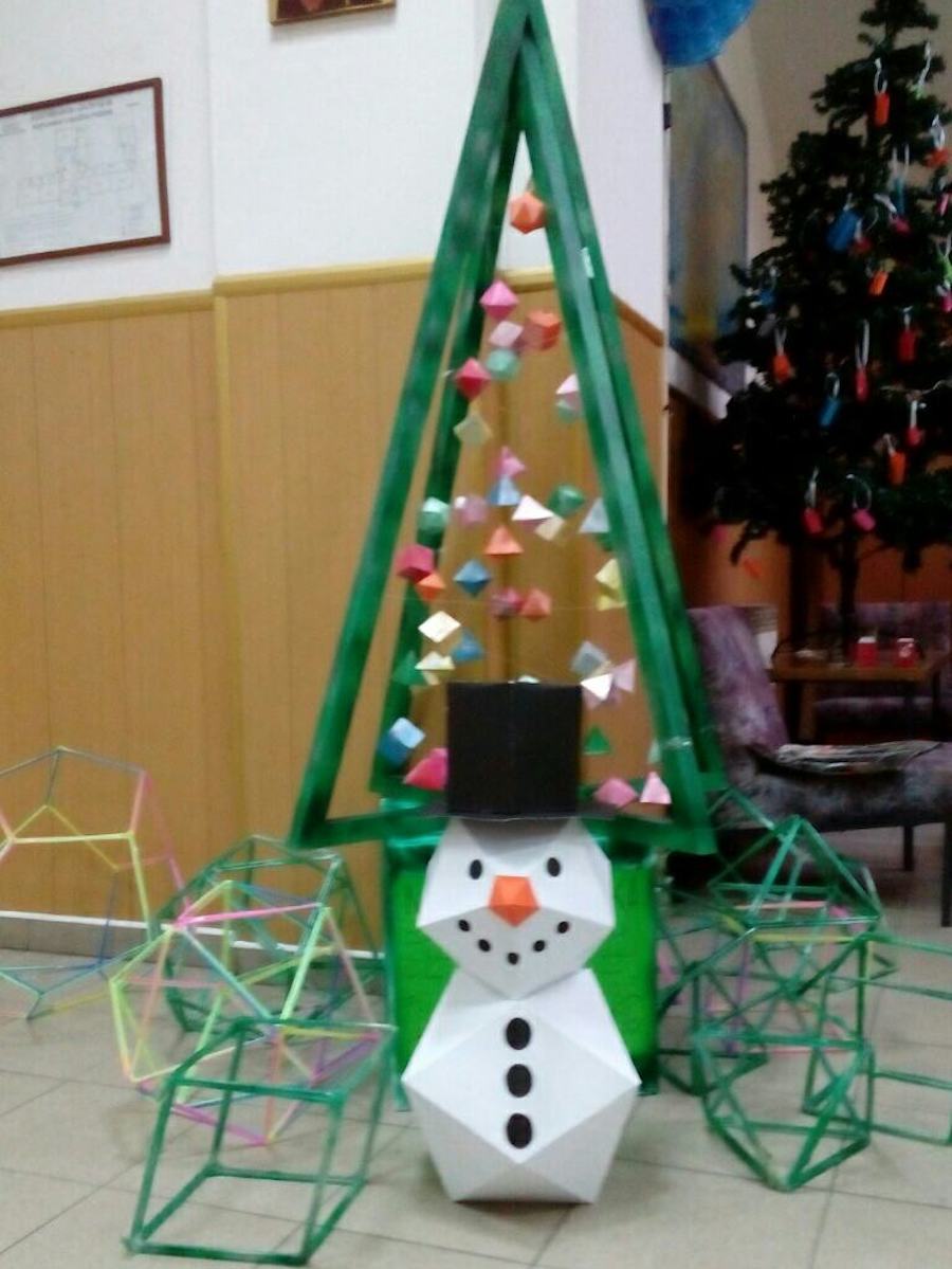 Ученици Математичке секције испричали су и своју причу о Платоновим телима. Конструисали су и правили украсе од папира и сламки у облику тертраедра, хексаедра, октаедра, додекедра и октаедра. Користећи своја математичка знања направили су Снешка у облику два икоседра, капе у облику шестостране призме и носа правилне петостране пирамиде.