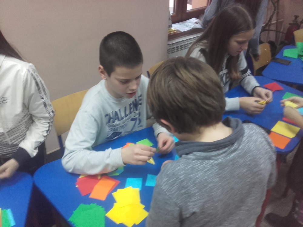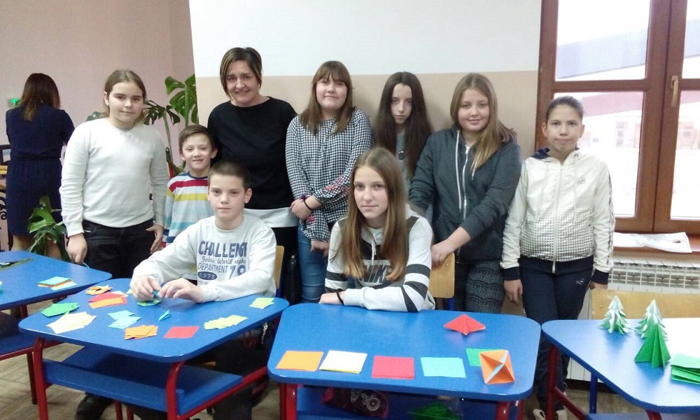 Ученици математичке секције шестог и петог разреда, заједно са својом наставницом Александром Весовић, придружили су се ученицима нижих разреда наше школе у изради новогодишњих украса – оригами техником.