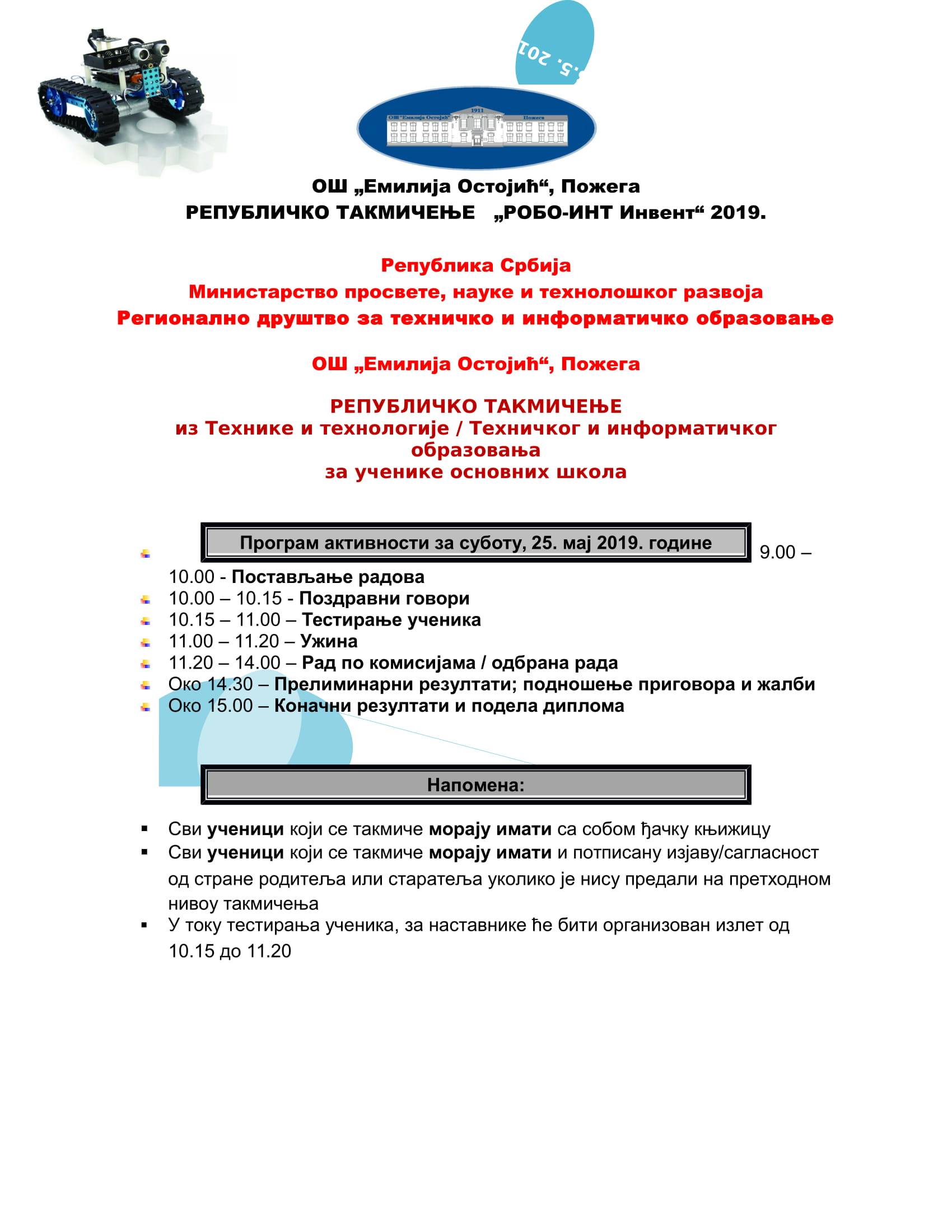 Напомена: - Сви ученици који се такмиче морају имати са собом ђачку књижицу