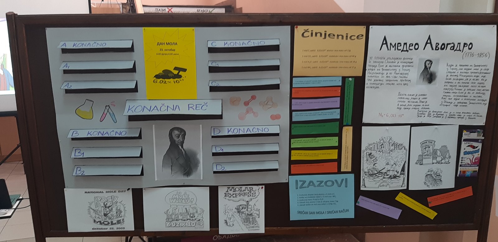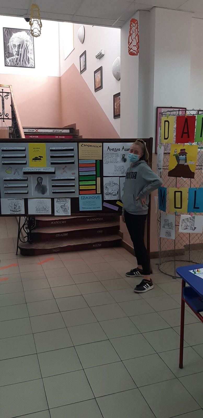 У сарадњи са наставницом хемије Зорицом Боловић, ученици хемијске секције VII i VIII разреда ОШ „Емилија Остојић“ обележили су данас (23.10.2020.) у холу школе Дан мола.