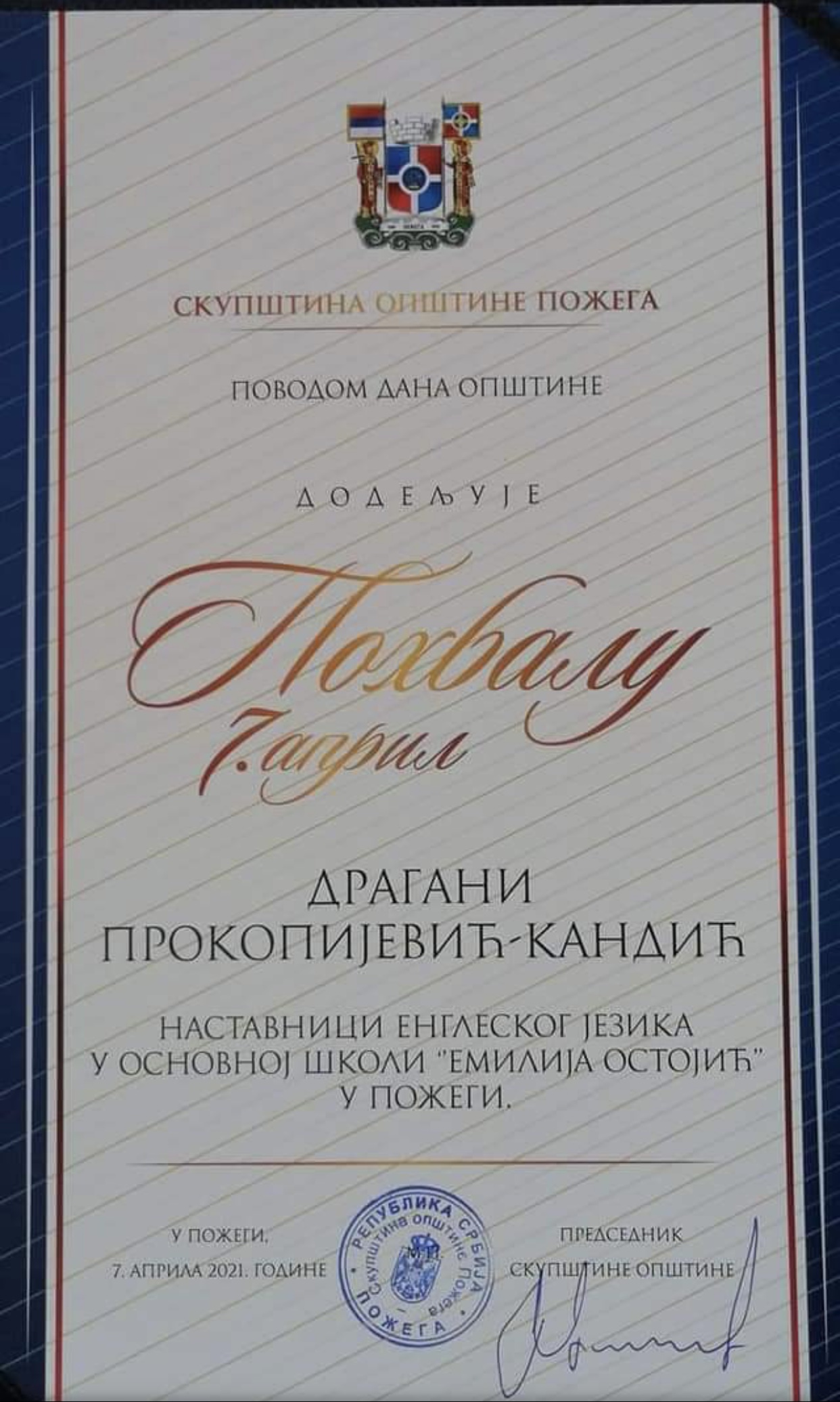 енглеског језика Драгана Прокопијевић Кандић.