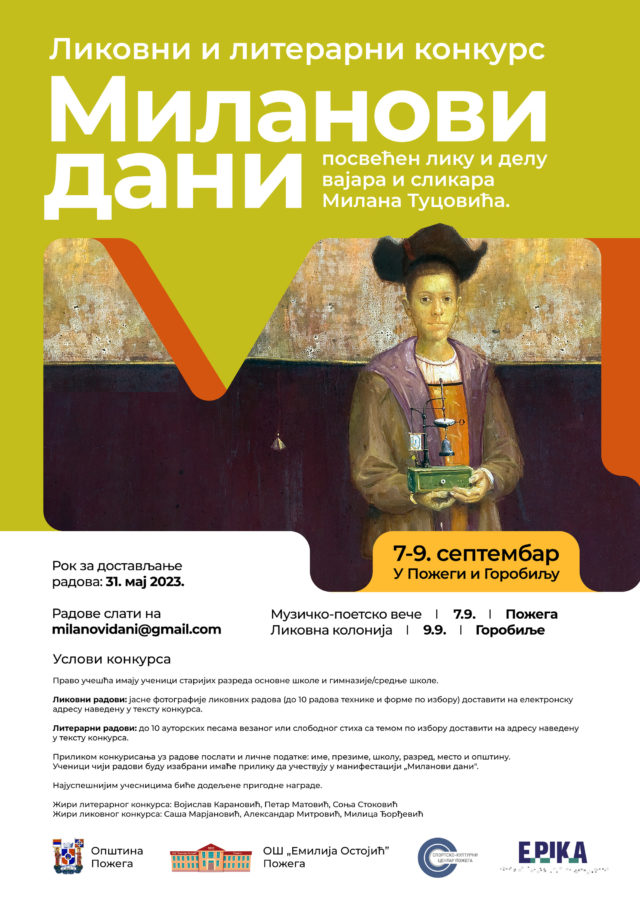 Приликом конкурисања уз радове послати и личне податке: име, презиме, школу, разред, место и општину. Ученици чији радови буду изабрани имаће прилику да учествују у манифестацији „Миланови дани“.