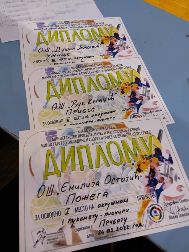 24.3.2022. године одржано је Окружно такмичење у рукомету, за дечаке и девојчице у Прибоју. Дечаци су освојили прво место и пласирали се на Међуокруг, док су девојчице заузеле друго место. Честитке свој деци и наставницима на великом успеху.