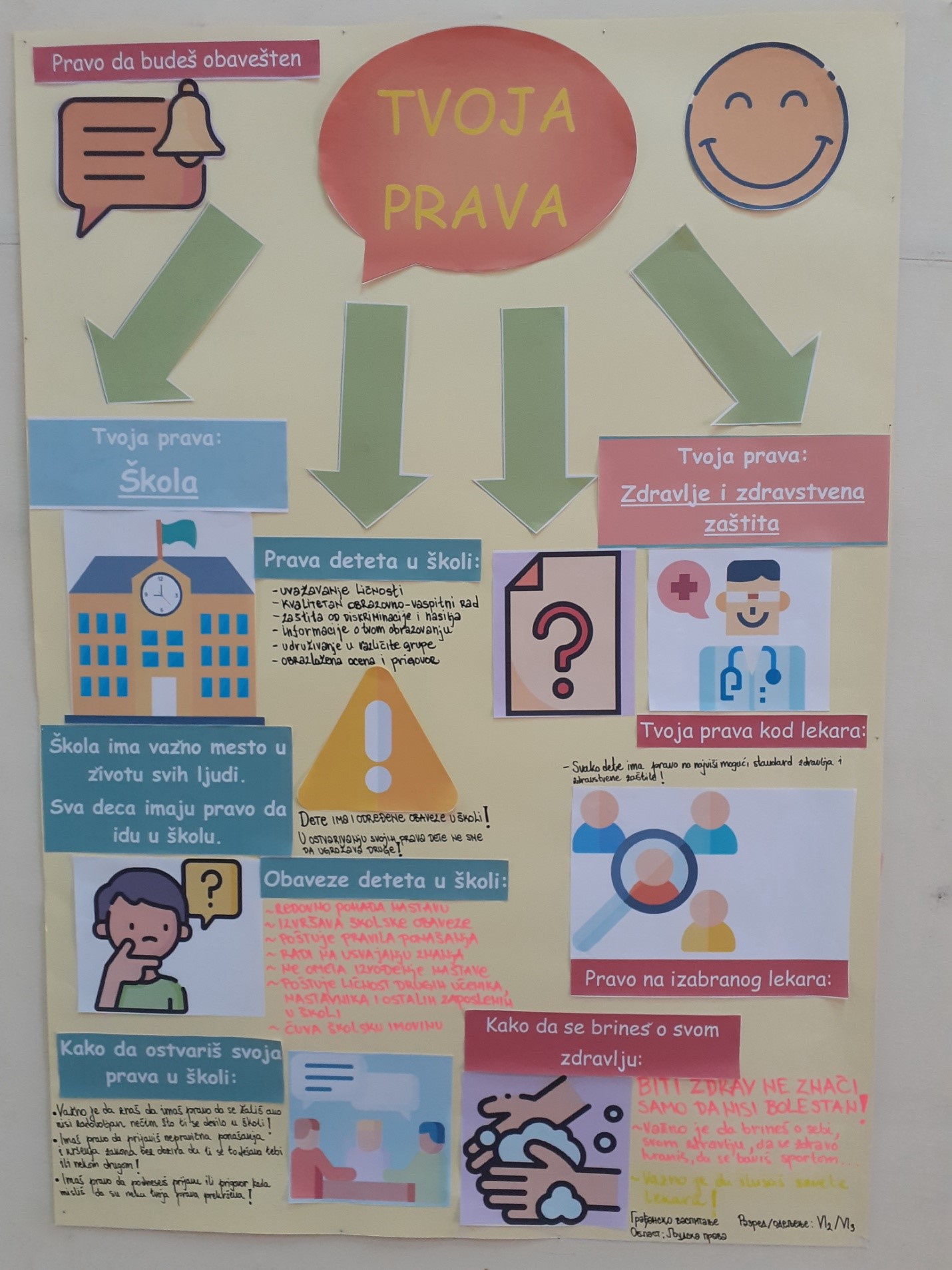 У оквиру часа грађанског васпитања, ученици VI2 и VI3 одељења заједно са својом наставницом Иваном Бошковић, реализовали су радионицу на тему „Твоја права“, са посебним освртом на –Права и обавезе у школи и Права на здравствену заштиту.