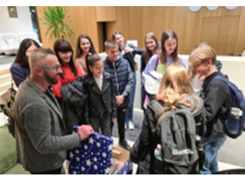 Већ први контакт наших ученика са ученицима из Словеније био је прожет позитивном енергијом. Том приликом гости су добили пригодне поклоне добродошлице.
