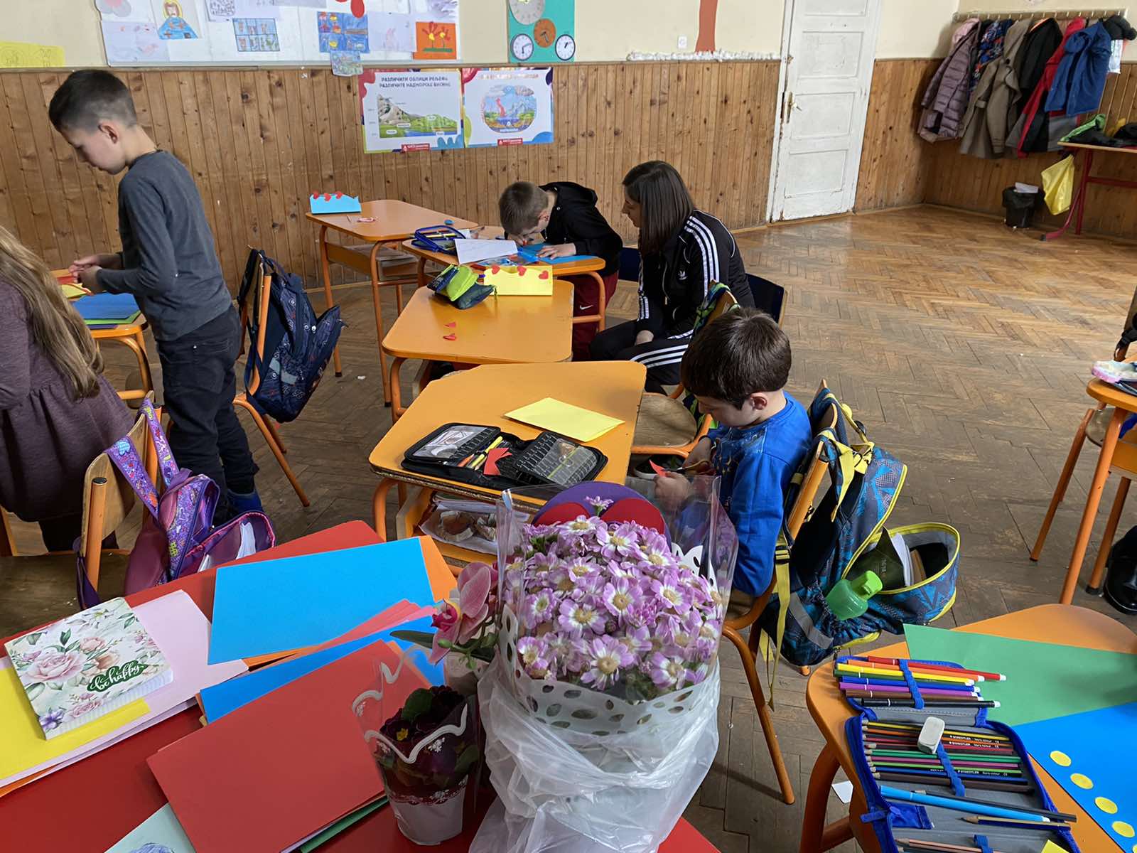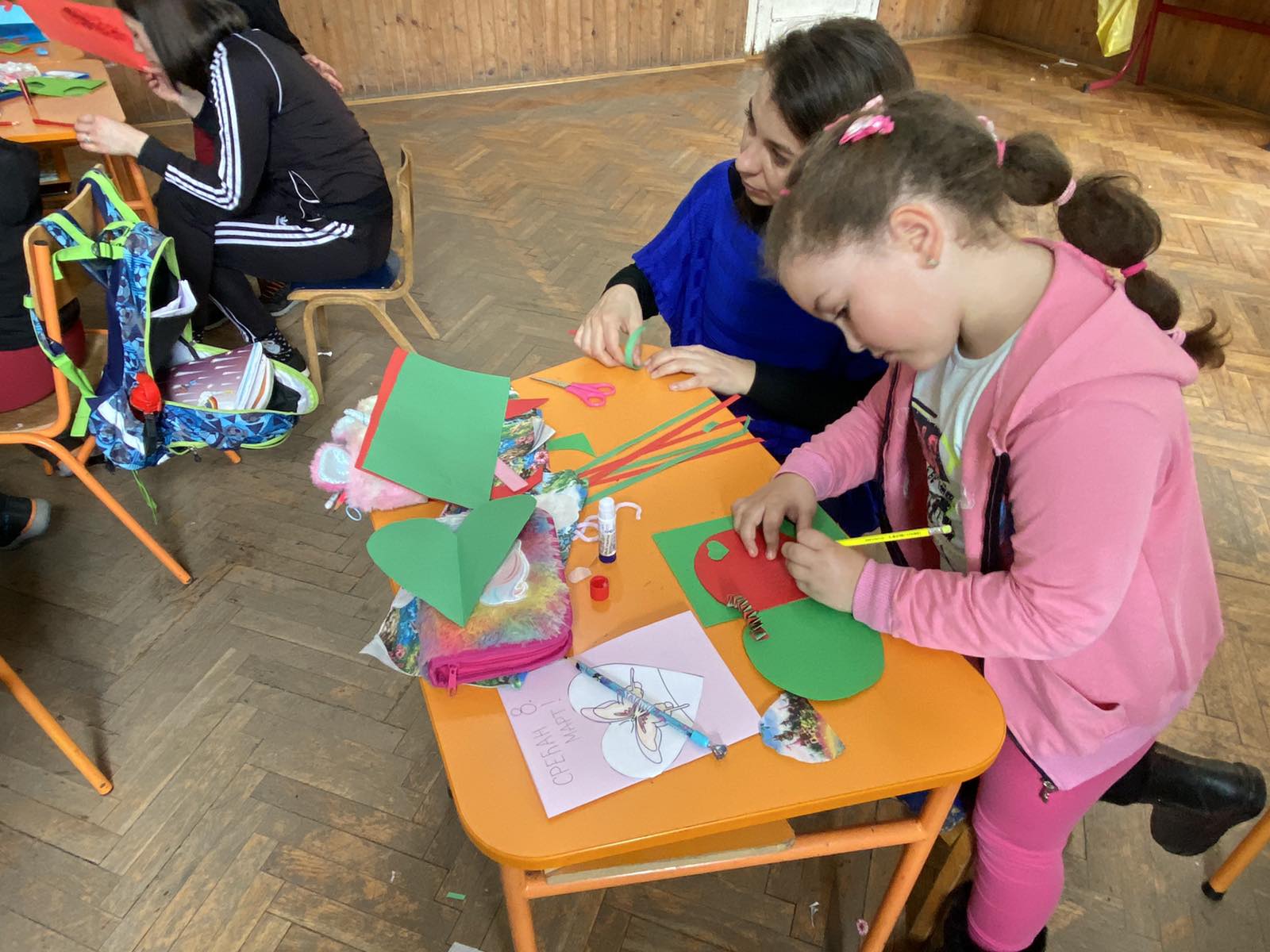 Приредба поводом 8.марта- Средња Добриња. Ученици другог и трећег разреда. И радионица – прављење честитки у сарадњи са родитељима поводом Дана жена.