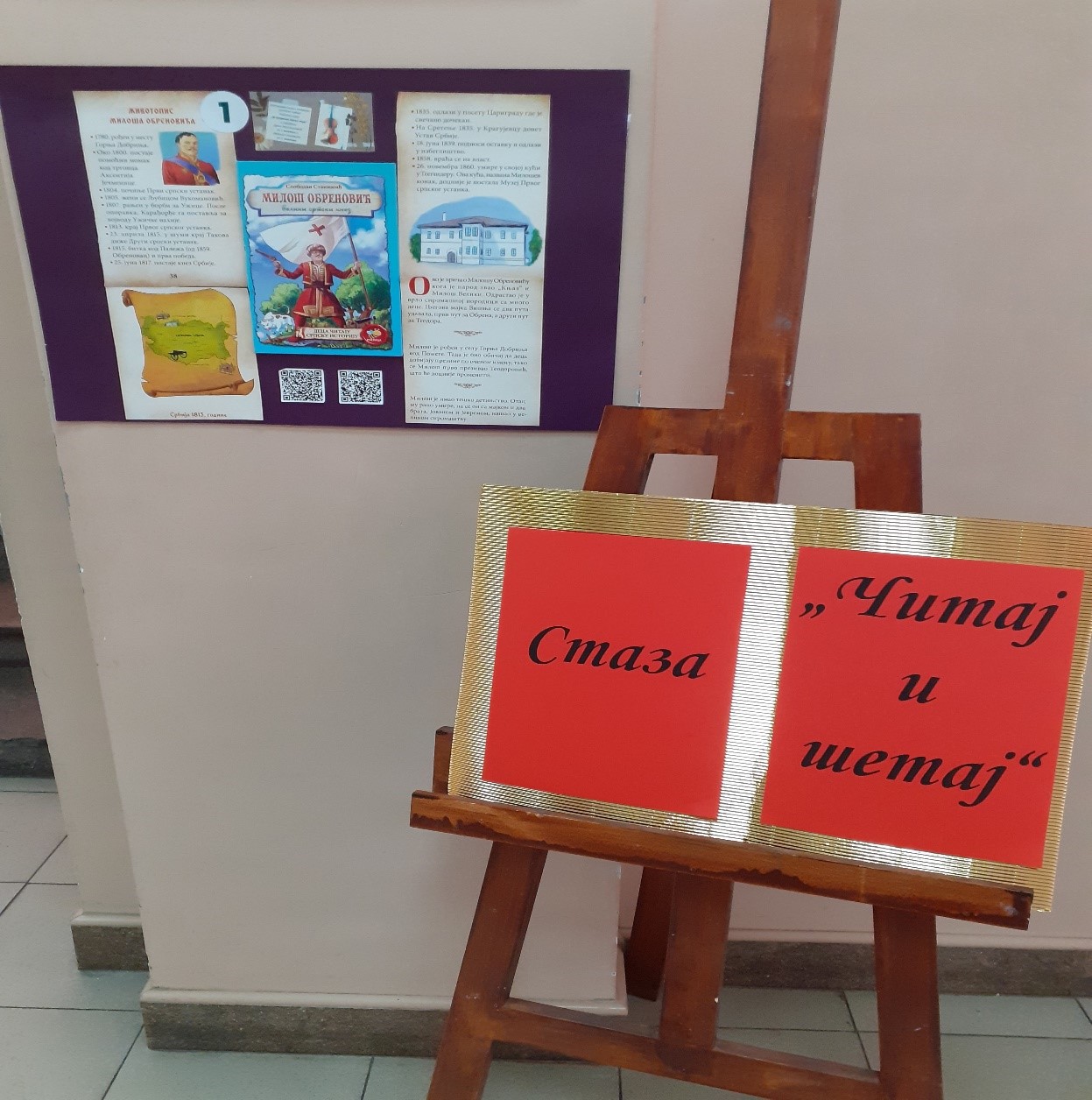 Захваљујући пријатељима, библиотекарима Дечјег одељења Народне библиотеке Пожега, наша школа постала је богатија за стазу „Читај и шетај“.