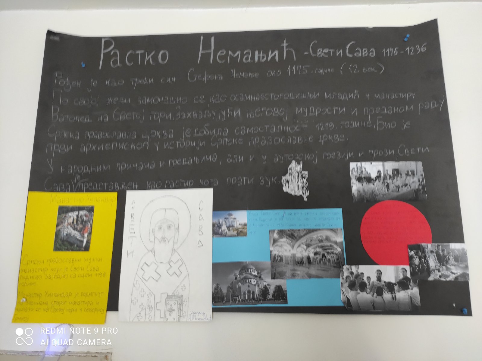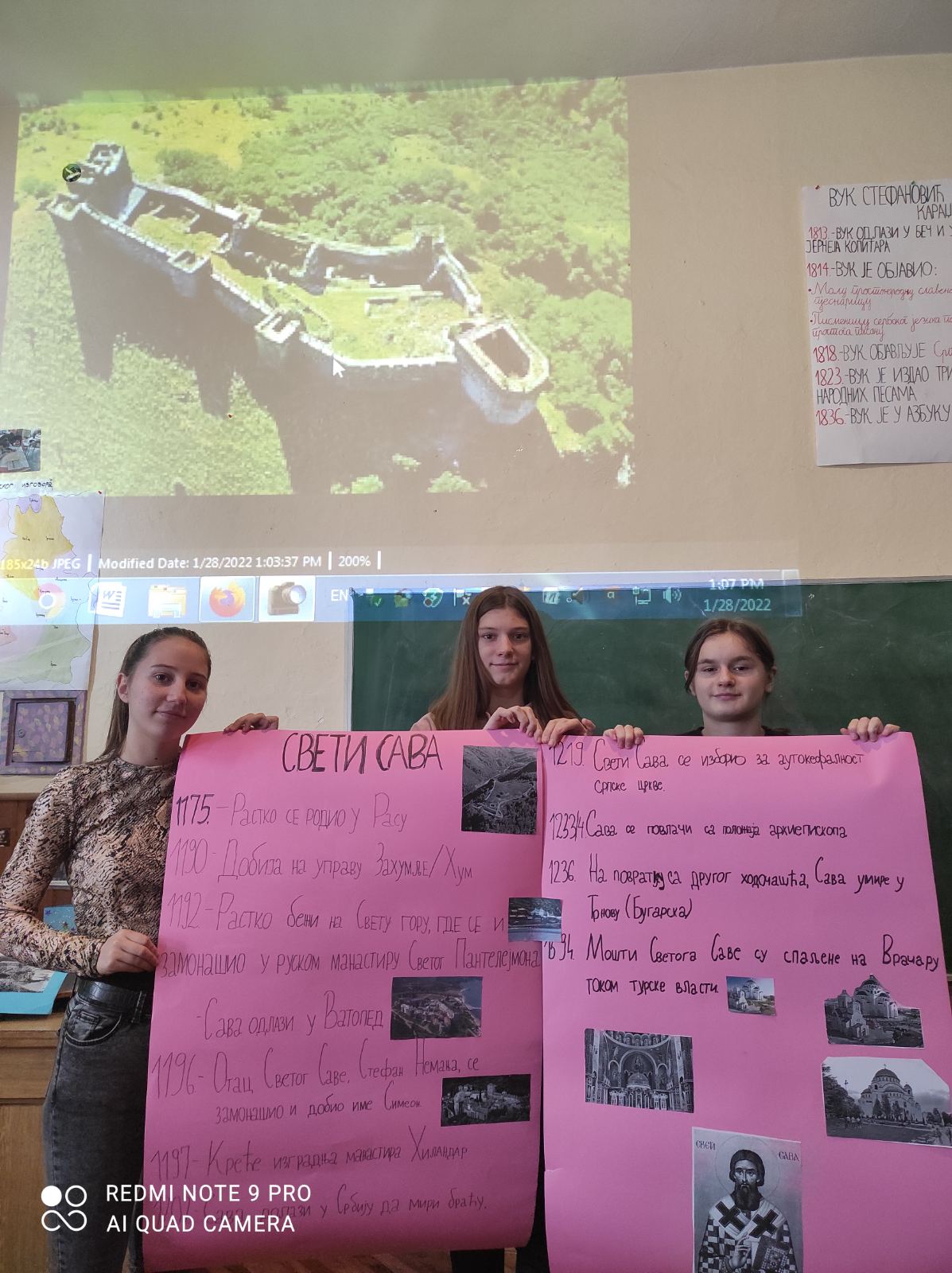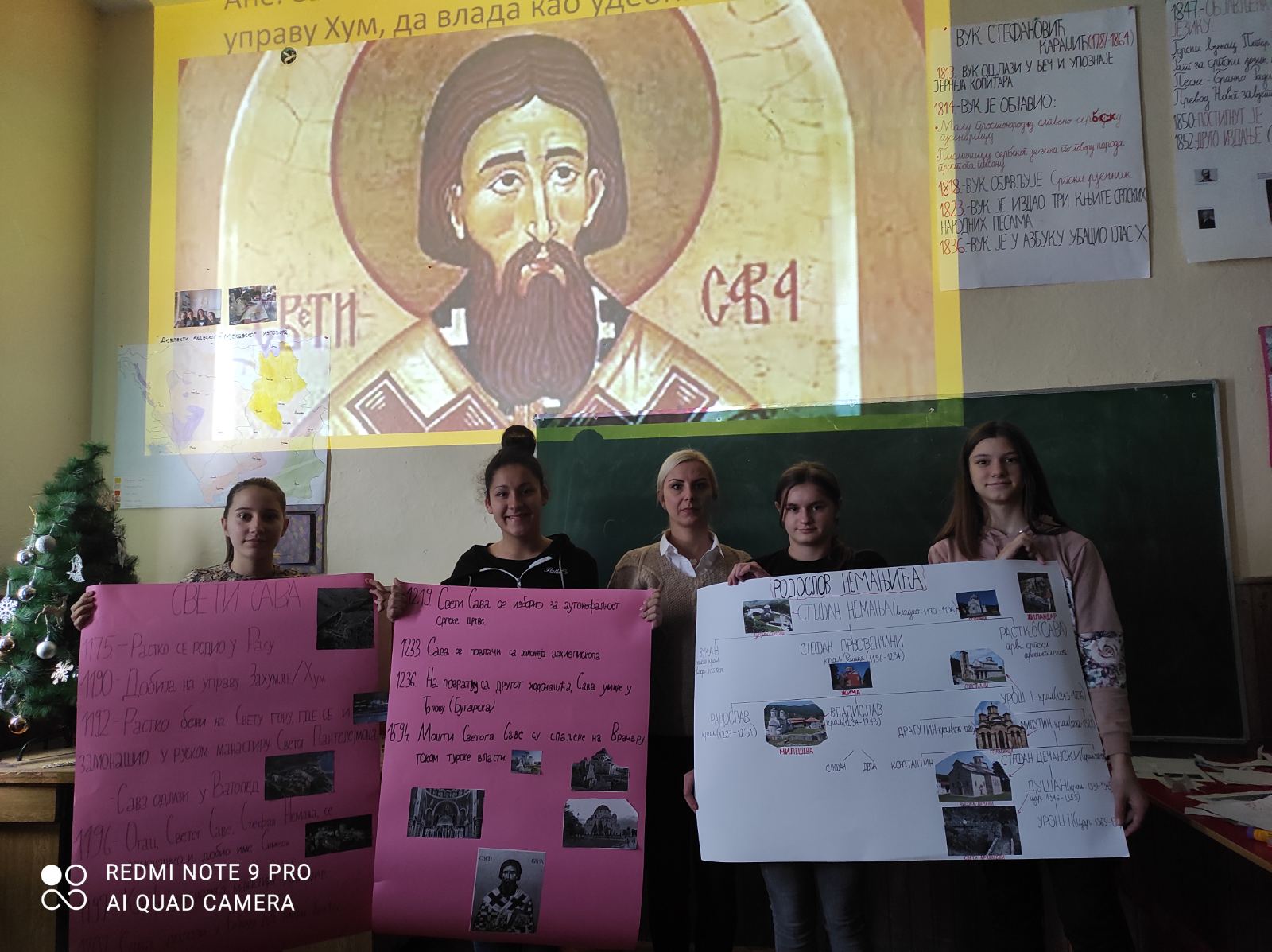 У мирној и свечаној атмосфери, ученици од 5. до 8. разреда ИО Средња Добриња удруженим снагама са својом наставницом српског језика и књижевности, оживели су сећање на давно време у којем је живела лоза Немањића. Немањићи су обогатили нашу историју младим Растком, првим српским просветитељем Савом. Низом активности (глумом, сликањем, писањем и читањем текстова посвећеним Светом Сави) обележена је последња седмица јануара под називом ,,Стопама Светог Саве“.