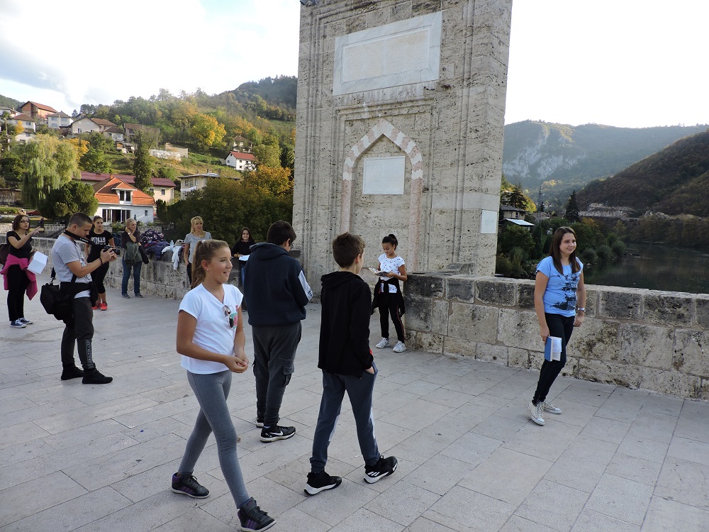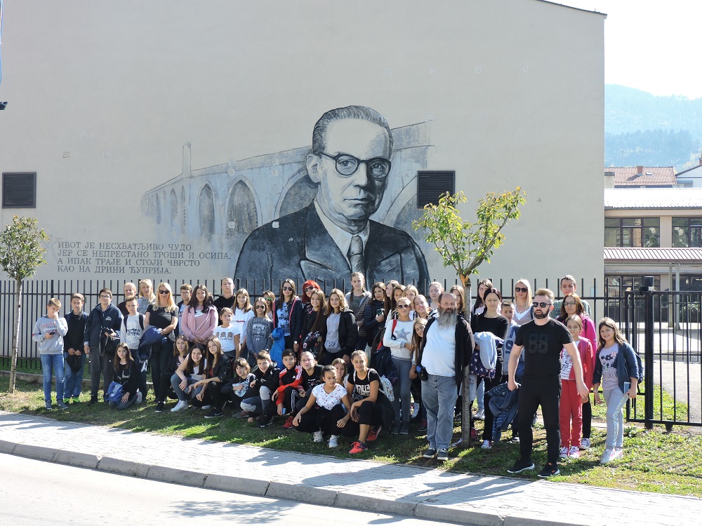 - октобар 2018. Вишеград – У оквиру пројектне наставе под називом Сусрет са Андрићем ученици старијих разреда ОШ „Емилија Остојић“ Пожега, са својим наставницима посетили су Вишеград. На путу за Вишеград свратили су у Добрун, један од најстаријих српских православних манастира на просторима данашње БиХ. Затим су у Вишеграду обишли и упознали се са Андрићградом, ћупријом на Дрини, спомен учионицом Иве Андрића и имали прилику да се током вожње реком Дрином сусретну са кућом у којој је Андрић провео своје детињство, а која је данас у приватном власништву и може се видети само споља. Такође, поред ћуприје могли су видети и зграду чувеног Лотикинохг хотела из романа На Дрини ћуприја, као и мермерни споменик Иви Андрићу који симболизује отворену књигу на којој се налазе медаљони с ликом Иве Андрића. Величанствени мост, ћуприју Мехмед паше Соколовића, ученици су посматрали и са видиковца који се налази изнад самог моста на Дрини. Пројекат Сусрет са Андрићем чини ученички истраживачки рад који подразумева проучавање живота и рада писца, организовање и реализацију посете Андрићграду, Вишеграду, као и посебан осврт на књижевна дела писца која се проучавају у основној школи. План пројекта је и организовање и реализација литерарног, фото и ликовног конкурса, и јавног наступа ученика под називом Сусрет са Андрићем.