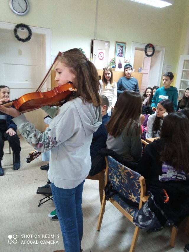 Ученици 5-2, 5-4, 6-1 и 6-4 данас су посетили Дом за стара лица у Пожеги. Певали су, свирали, дружили се и дали корисницима Дома честитке које су сами правили и писали.